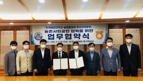 농협중앙회 부산지역본부(본부장 오세윤)와 한국해양대학교(총장 도덕희)는 17일 한국해양대 정책회의실에서 ‘농촌사회공헌 협력을 위한 업무협약’을 체결했다.