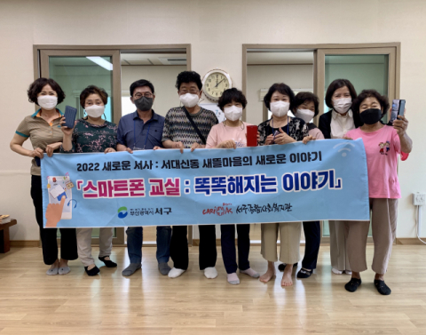 부산 서구(구청장 공한수)와 서구종합사회복지관(관장 조휴정)은 지난 22일 '서대신4동 새뜰마을 스마트폰교실'수료식을 가졌다. 본 프로그램은 디지털 기기의 사용을 어려워하는 노년층을 대상으로 스마트 폰 기초사용법, 키오스크 활용 등을 주제로 총 12회에 걸쳐 진행되었으며 이번 교육을 통해 디지털 취약계층의 정보격차를 해소하고 마을 디지털 공동체 형성 마련의 기반을 마련하였다.