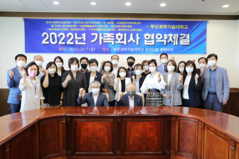 부산과학기술대학교(총장 강기성)는 17일 대학 내 본관에서 한국사회복지상담학회 회장(신라대학교 사회복지학과 정원철 교수)와 복지관련 단체인 연리지재가노인복지센터 등 11개 업체와 가족회사 협약을 체결했다.