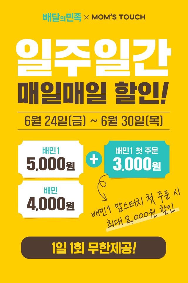 △토종 버거·치킨 브랜드 맘스터치가 오는 30일까지 배달의민족 이용 고객을 대상으로 최대 8000원 할인 프로모션을 진행한다. 이른 여름 휴가 시즌을 맞아 전국 각지로 캠핑이나 레저를 즐기러 떠나는 고객들에게 휴가지에서도 맘스터치 메뉴를 간편하고 푸짐하게 즐길 수 있도록 마련했다. 이벤트 기간 내 배달의민족 앱에서 쿠폰을 다운로드 한 뒤 가까운 맘스터치 매장에서 주문 시 할인 혜택을 받을 수 있다. 포장, 배달, 배민1 주문 형태에 따라 3000원부터 최대 8000원까지 할인 혜택(ID당 1일 1회 사용 가능)이 주어진다. 최소주문금액 등 보다 자세한 내용은 배달의민족 앱을 통해 확인할 수 있다. 할인 적용 메뉴는 맘스터치 버거부터 치킨, 사이드까지 전 메뉴에 해당한다. 최근 출시된 '어메이징매콤마요버거'는 부드럽고 쫄깃한 닭다리살 패티와 에그프라이, 치즈, 토마토, 양상추에 매콤한 고추장과 고소한 마요네즈의 환상적인 조합으로 맛있게 매운맛을 구현해 큰 인기를 끌고 있다. '도깨비치즈볼', '달콤초코볼','‘달콤카라멜볼' 등 스낵볼 3종은 달콤한 맛을 즐길 수 있는 간식 메뉴로 제격이다.