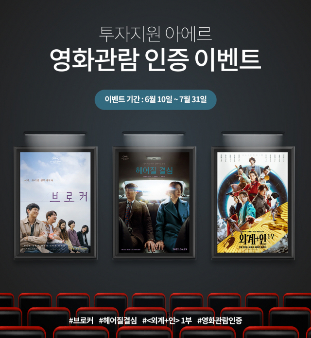 △라이프케어솔루션 브랜드 '아에르(Aer)'로 유명한 씨앤투스성진이 '브로커', '헤어질 결심', '외계+인' 1부 등 아에르가 투자 지원한 영화들의 개봉을 기념해 영화관람 인증 이벤트를 진행한다. '아에르가 선택하면 다르다' 이벤트는 간단한 영화관람 인증만 하면 자사몰에서 현금처럼 사용 가능한 마일리지를 이벤트 참여자 모두에게 제공한다. 7월 31일까지 진행되며 영화별로 5000마일리지씩 지급해 1인당 최대 1만 5000마일리지까지 적립이 가능하다. 이벤트 대상 영화는 올해 칸 영화제에서 남우주연상을 수상한 '브로커'와 감독상 수상작 '헤어질 결심', 하반기 최대 기대작인 최동훈 감독의 '외계+인' 1부까지 총 3편이다. 이벤트는 자사몰 '더아에르' 회원가입 후, 카카오톡 플러스친구 채팅창에 티켓 인증샷과 자사몰 ID를 전송하면 참여가 완료된다.
