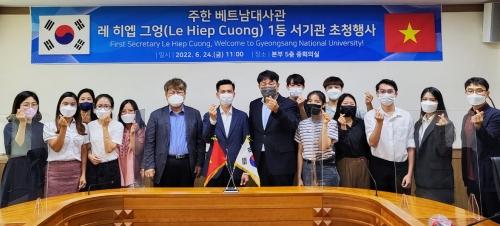 경상국립대(총장 권순기)는 24일 가좌캠퍼스에서 주한 베트남대사관 레히엡그엉 1등 서기관을 초청, 베트남대학과의 학생·학술교류에 대해 논의했다.