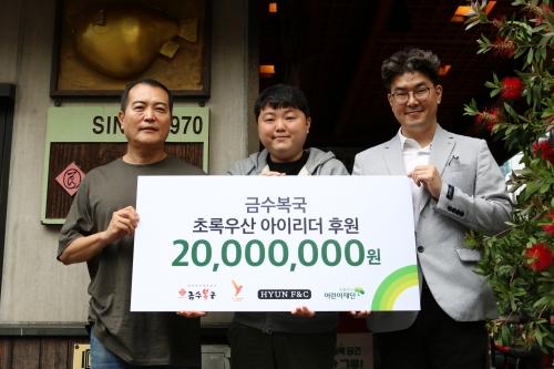 이날 전달식에는 부자 관계인 유상용 회장, 유성현 대표는 물론 노희헌 본부장이 참석했다. 후원금은 초록우산 아이리더 사업에 사용될 예정이다. 이 사업은 저소득가정 아동들이 꿈을 펼칠 수 있도록 지원하는 사업이다. 금수복국은 부산지역 아이리더 4명과 결연을 해 2000만 원의 인재양성 장학금을 지원할 예정이다.