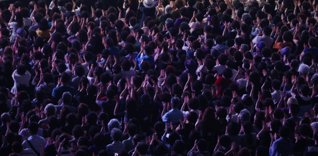 26일 오후 부산 영화의전당 야외극장에서 열린 ‘플라시도 도밍고 라이브 인 부산 2022’ 공연에 많은 관객이 객석을 가득 메우고 있다. 정종회 기자 jjh@