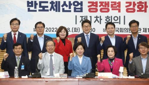 이 자리에 참석한 국민의힘 권성동 원내대표는 “윤 대통령이 대한민국을 반도체 초강대국으로 만들겠다고 약속했다. 이제 국회도 힘을 모아야 한다”며 “어떻게 반도체 인재를 양성할 건지, 세액공제를 어떻게 할 건지, 전력용수는 어떻게 확보할 건지, 이와 관련된 불필요한 규제를 철폐하고 반도체 현안 문제를 해결하기 위해 적극 나서야 될 때”라고 강조했다.