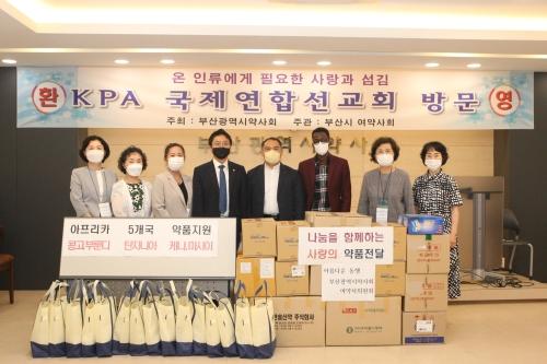 부산시약사회(회장 변정석)와 부산시여약사회(회장 박경옥)는 27일 약사회관에서 KPA국제연합선교회(대표 이영행)에 콩고, 부룬디, 탄자니아, 케냐, 마사이 등 아프리카 5개국에 전달할 1000만 원 상당의 의약품을 기탁했다.