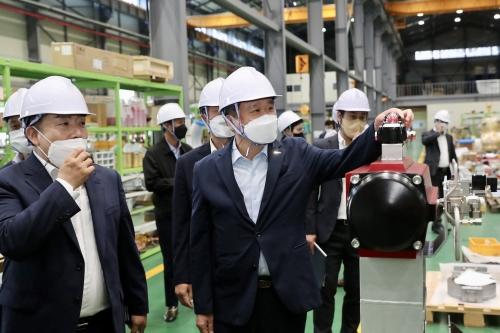 중소벤처기업진흥공단 김학도 이사장은 29일 부산 강서구 미음산단에 있는 친환경 선박 회사 (주)디에이치콘트롤스를 방문해 현장 간담회를 열었다.