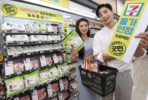편의점 세븐일레븐은 초저가 상품 브랜드인 ‘굿민(Good People)’을 30일 출시하고, 1차로 안심달걀 10입, 한입삼겹살 500g, 한끼두부 300g 등 저가 제품 5종을 선보였다. 세븐일레븐 제공