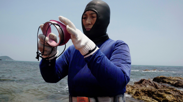 김형숙 해녀가 바다로 물질을 떠나기 전 물안경을 점검하고 있다. 정수원 PD blueskyda2@busan.com