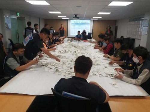 현대차노조가 지난 1일 울산 노조사무실에서 쟁의행위 찬반투표 개표 작업을 하고 있다.