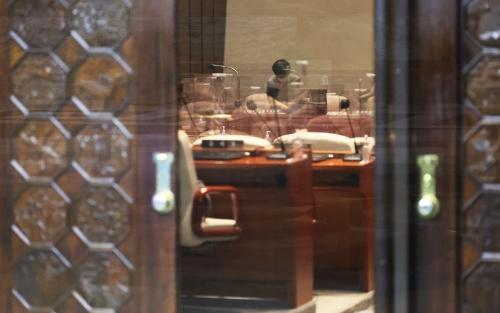 국민의힘과 더불어민주당이 21대 국회 후반기 원 구성 문제를 놓고 지루한 줄다리기를 이어가고 있는 가운데 13일 국회 본관 제2회의장에서 직원들이 회의장을 청소하고 있다. 김종호 기자 kimjh@여야가 한 달 넘도록 후반기 국회 원 구성을 두고 줄다리기를 이어가는 가운데, 더불어민주당의 본회의 단독 개회 예고일을 하루 앞둔 3일까지 양측은 접점을 찾지 못한 채 공전을 거듭했다. 양당은 4일 본회의가 예정된 오후 2시 전까지 논의를 계속한다는 계획이지만 그간 첨예한 입장 차를 보여 온 까닭에 막판 담판 가능성은 낮을 것으로 점쳐진다. 국민의힘은 “날치기 개원”이라며 강하게 반발하고 있어 향후 정국은 얼어붙을 것으로 전망된다.