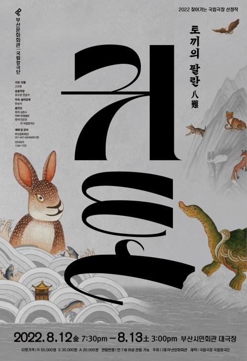 (재)부산문화회관은 다음 달 12일과 13일 이틀 동안 국립창극단의 ‘귀토’를 부산시민회관 대극장에서 공연한다고 밝혔다. 국립창극단 전 단원을 포함해 총 53명의 출연진이 무대에 오르는 대규모 공연이다. 이번 공연을 유치하기 위해 (재)부산문화회관은 ‘찾아가는 국립극장’ 공모사업에 참여해 1억여 원의 예산을 확보했다.
