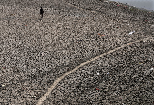 폭염·산불·가뭄 등 지구촌에 자연재해가 빈번해지면서 식량 위기에 대비해야 한다는 목소리가 높아져 간다. 왼쪽 사진은 지난 4월 강원도 양구군 양구읍 송청리에서 발생한 산불. 인도 뉴델리의 한 남성이 폭염과 가뭄으로 말라붙은 야무나강 강바닥을 걸어가고 있다. 연합뉴스