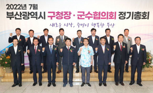 부산시 16개 구·군의 행정 협의체인 구청장·군수 협의회 정기총회가 14일 부산 남구청 대강당에서 열렸다. 민선 8기 전반기 협의회장으로 강성태 수영구청장이 선출됐다.
