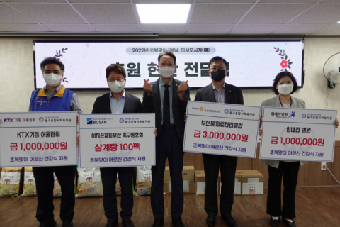 이날 행사는 부산제일로타리클럽, 힘내라병원, KTX기장어울림회, 허치슨포트부산 축구동호회 및 자원봉사대, 부산나라요양병원 등이 후원에 참여했고, 부산광역시 곰두리 봉사회가 삼계탕 조리에 도움을 주었다.
