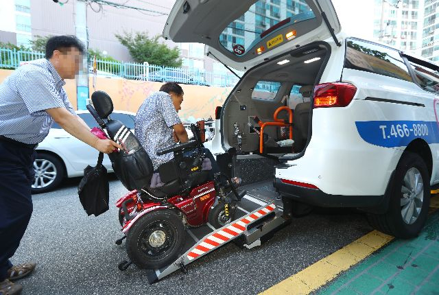 교통약자 콜택시 두리발 이용 모습. 부산일보DB