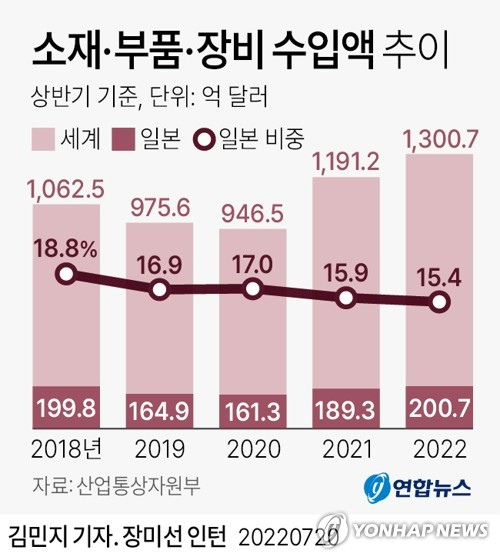 상반기 '소부장' 수입 일본 의존도 15.4%…역대 최저 기록