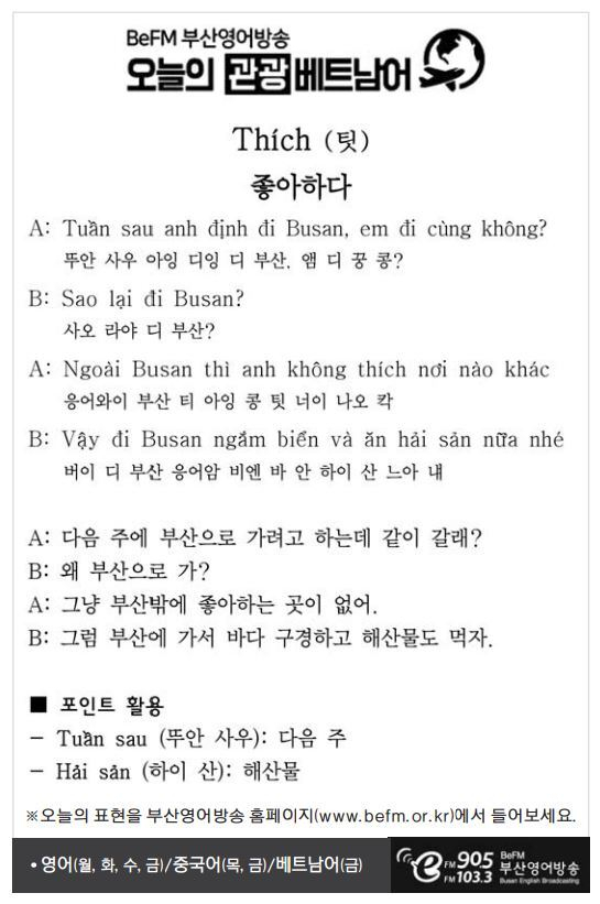 [관광 베트남어] 좋아하다