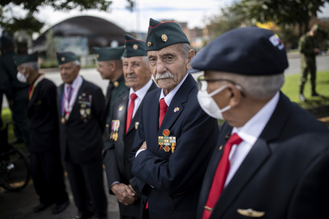 콜롬비아의 한국전 참전용사들이 20일 보고타에서 열린 콜롬비아 독립 제212주년 기념일 퍼레이드에 참여하고 있다. 콜롬비아는 남미에서 유일하게 한국전에 파병한 국가다. AP연합뉴스