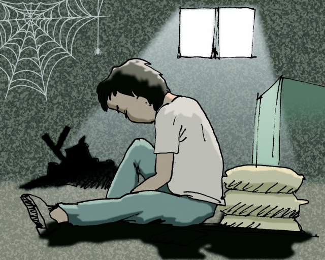 폐공장의 지하 곳곳에 오래된 짐들과 생활 도구들이 흩어져 있습니다. 뚫려 있는 창문 사이로 고양이, 비둘기, 쥐들이 수시로 들어오다 보니 동물들의 배설물 흔적도 많이 보입니다. 곰팡이가 가득한 지하는 습한 공기 탓에 요즘같이 더운 날은 찜통 같은 공간이 됩니다. 용수 씨가 이곳에서 세상과 벽을 쌓고 지낸 지 어느덧 10년이 넘었습니다.