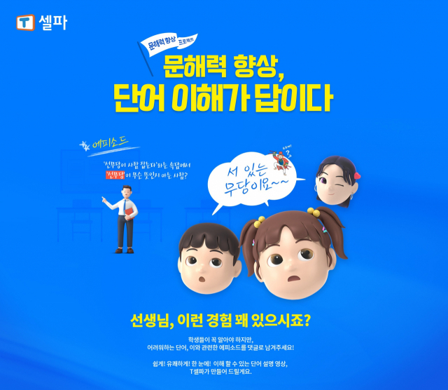△천재교육·천재교과서 교수학습지원서비스 T셀파가 오는 31일까지 초등 교사들을 대상으로 아이들의 문해력 향상을 위한 이벤트를 진행한다. 천재교육 T셀파는 최근 화두인 문해력 저하로 인한 교사들의 어려움을 돕고, 효과적인 수업 자료를 제공하고자 이번 이벤트를 마련했다. 이를 통해 교사들의 다양한 의견을 반영해 학습에 실질적으로 필요한 개념어들을 쉽고 재미있게 알려 줄 수 있는 영상 콘텐츠를 제작할 예정이다. 이벤트 참여 방법은 T셀파 내 이벤트 페이지에 접속 후, 아이들이 꼭 알아야 하지만 이해하기 어려워하는 단어와 관련된 에피소드를 댓글로 남기면 된다. 참가자 중 500명을 추첨해 아이스크림 기프티콘을 증정하며 당첨자는 8월 2일 T셀파 사이트에서 직접 확인이 가능하다. T셀파는 최근 초등 검정 3,4학년 수·사·과 교과서 점유율 1위를 한 천재교육·천재교과서의 온라인 교수학습지원 서비스로 전국 초·중·고 약 22만 교사회원이 가입돼 있다. 수업 준비에 필요한 전과목 콘텐츠·맞춤 서비스를 제공해 교사들의 질 높은 수업 설계를 돕고 현장에 있는 교사들의 의견을 적극 반영한 차시 콘텐츠·18만 평가 문항 등 다양한 수업 자료를 제공하고 있다. 교사들이 직접 자신의 수업 자료를 나누고 서로 공유할 수 있는 '쌤나눔자료'와 수업 설계 도구인 '티칭보드', 천재 교과서의 빅데이터 기반의 문항 출제 기능인 '온라인평가마법사(시험지마법사)' 등을 리뉴얼해 효율적인 수업을 지원한다. 하반기에는 학급운영서비스도 업데이트 될 예정이다.