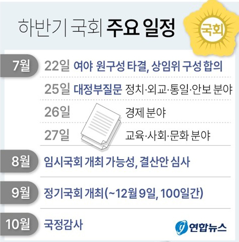 21대 후반기 국회 원 구성 협상이 가까스로 마무리되면서 입법 공백 상태는 일단 해소됐지만, 여야의 본격적인 힘 겨루기가 25일 대정부질문을 시작으로 본격화할 전망이다.