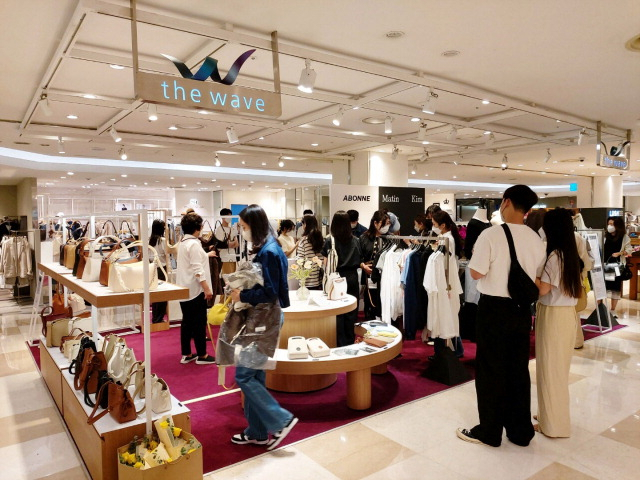 롯데백화점 부산본점은 28일까지 2층 ‘더웨이브존’에서 여성복 브랜드인 ‘마뗑킴'(Matin Kim)의 부산 첫 팝업 행사를 진행한다. ‘마뗑킴’은 SNS로 고객과 바로 소통하는 마케팅 기법으로 MZ 세대 사이에서 인기몰이를 하며 올해 연매출 500억 원을 바라보고 있다. 롯데백화점 제공