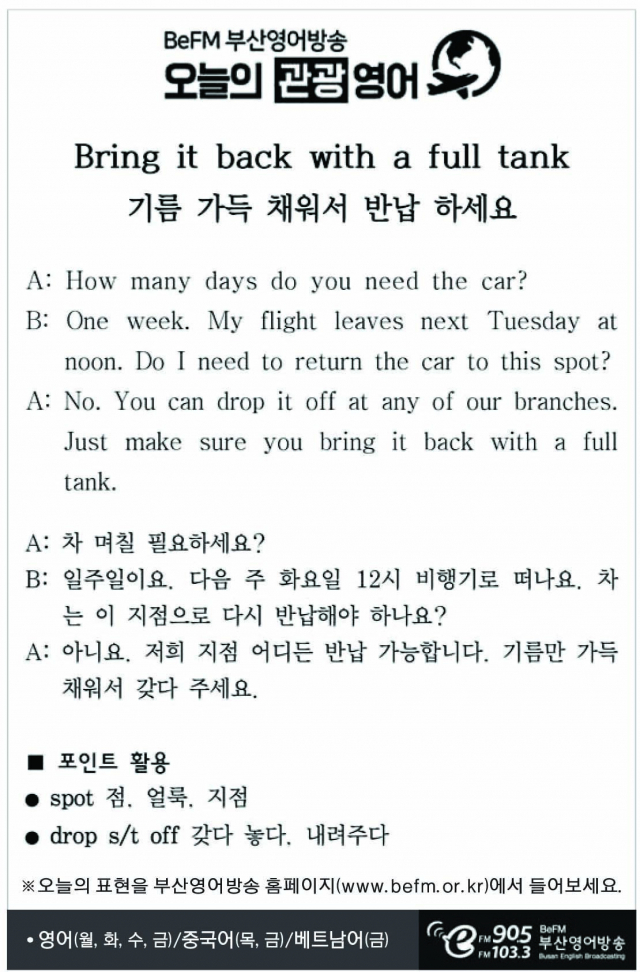 [관광 영어] 기름 가득 채워서 반납 하세요