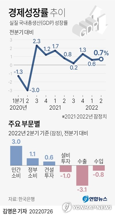 올해 2분기 성장을 이끈 소비도 향후 흐름에 대한 불확실성이 크다. 고물가·고금리 상황에서 가계의 구매력이 약화하고 있다는 점도 부정적이다. 투자에 대한 전망도 밝지 않다.