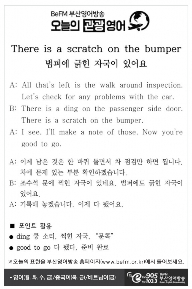 [관광 영어] 범퍼에 긁힌 자국이 있어요
