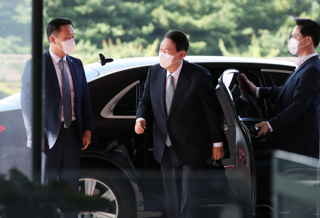 윤석열 대통령이 서울 용산 대통령실 청사로 출근하고 있다. 연합뉴스
