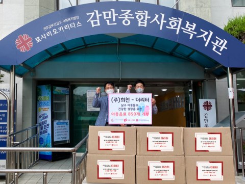 더리터가 어린이들의 건강한 성장을 응원하고자 유기농 음료를 기부했다.