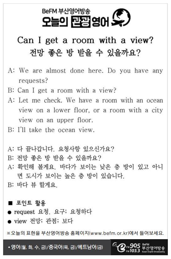[관광 영어] 전망 좋은 방 받을 수 있을까요?