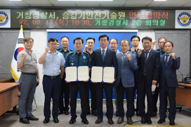 경남 거창경찰서(서장 남기재)와 한국승강기 안전기술원(원장 장웅길)은 11일 사회적 약자 보호를 위한 업무협약을 체결했다.