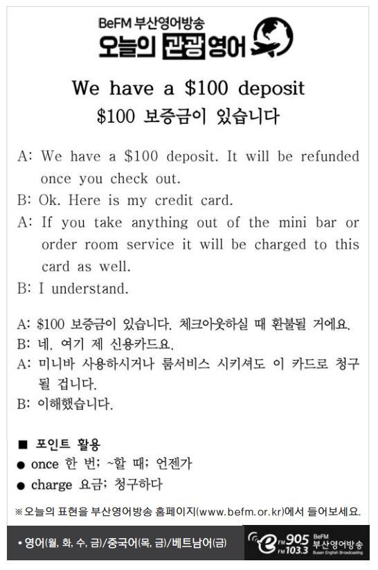 [관광 영어] 0 보증금이 있습니다