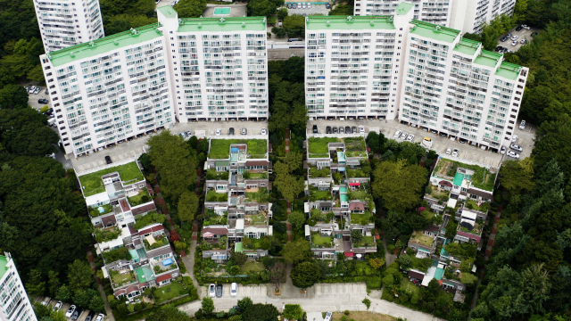 총 23동, 2038세대가 사는 곳으로 이 중 107동부터 110동까지 총 40세대가 1층 단독형 테라스동이다. 이 아파트의 상징으로 116㎡ 평 실거래가 기준, 2020년 5월 8억 500만 원에 거래됐다. 평당 2300만 원으로 해운대 등 집값 비싸기로 유명한 지역과 맞먹는 수준이다. 경사를 따라 빨간 벽돌을 사용한 계단이 가운데 놓여 있고, 현관문이 마주 보고 있다. 야외 복도라고 말할 수 있는 공간에는 큰 나무들이 우거져 하늘을 가리고 있다. 아름다운 풍경 덕에 사진찍기 좋은 아파트로 소문이 나기도 했다. 한가로이 정원에서 책을 읽거나, 반려동물을 키우기에도 부족함이 없어 보였다. 언뜻 텃밭을 일궈놓은 세대도 있었다. 이 아파트는 재건축을 앞두고 있는데, 재건축 후에도 테라스 디자인은 살렸으면 하는 바람마저 들었다.