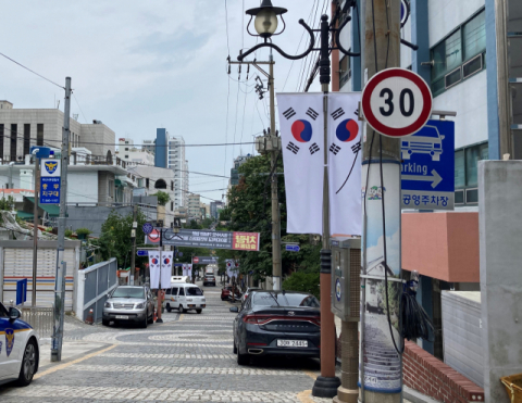 부산 서구 부민동 한국자유총연맹(회장 성오용)은 제77주년 광복절을 맞이하여 나라사랑하는 마음을 고취하고자 임시수도기념거리 일원의 태극기를 정비하였다.