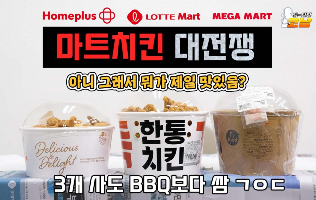 12년 만에 다시 돌아온 대형마트 치킨. 가격은 저렴하지만 프랜차이즈 치킨을 위협하는 맛과 양을 자랑한다는데… 홈플러스, 롯데마트, 메가마트 3곳의 치킨을 직접 구매해 비교해봤다.