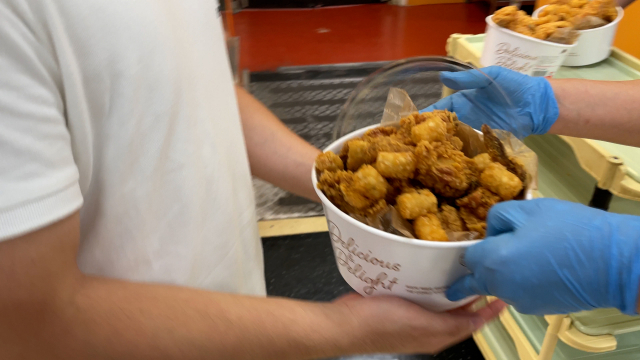 곧 10여 명 정도가 줄을 섰다. 사람이 몰리니 담당 직원이 안내를 시작했다. 그는 "조리기구 사정상 한 번에 6개씩 나온다"며 "다음 치킨은 15분 뒤에 또 나온다"고 외쳤다. 당당치킨은 '당일 제조, 당일 판매 치킨'의 줄임말이다. 30분 정도 기다리자 주방 문이 열렸고 곧 당당치킨이 나왔다. 1인 1마리 한정 상품이다. 마침내 당당치킨이 손에 들어왔다. 그사이 줄을 서 있는 사람은 더 늘었다. 하루에 판매되는 양이 정해져 있다 보니 웃지 못할 일도 벌어졌다. 중고거래 앱인 '당근마켓'에 웃돈을 붙여 당당치킨을 판매하는 사람이 나타난 것이다. 다행히(?) 반응은 싸늘했다고 전해진다.