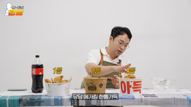 맹탐정 개인적으로 순위를 매기면, 당당치킨이 1위, 이어 메가킹치킨, 한통치킨 순이다. 당당치킨을 식기 전에 먹어봤다면, 유명 프랜차이즈 치킨과 비교해도 전혀 손색이 없는 맛이었다. 다른 사람의 입맛도 궁금해졌다. 동료기자와 PD에게 시식을 부탁했다. 평소 퍽퍽한 닭가슴살을 좋아하는 A씨는 "비슷한 반죽을 쓴 당당치킨과 한통치킨이 너무 비교된다"며 "한통치킨은 절대 사 먹지 않을 것"이라고 말했다. B씨는 "메가킹치킨이 딱 짭짤한 프라이드치킨의 정석 같은 맛"이라며 "색깔은 노르스름한 게 한통치킨이 맛있어 보이지만, 상대적으로 질기고 냄새도 난다"며 혹평했다. C와 D도 비슷한 의견이다. 당당치킨과 메가킹치킨은 취향에 따라 선호도 차이가 있을 뿐 "맛있는 치킨"이라고 말할 수 있지만, 한통치킨에 대해서는 한목소리로 "맛이 없다"고 평했다.