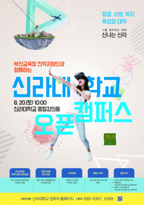 신라대학교(총장 김충석)가 8월 20일 오전 10시부터 오후 5시까지 교내 종합강의동에서 수험생과 학부모를 대상으로 ‘오픈 캠퍼스’ 행사를 개최한다.