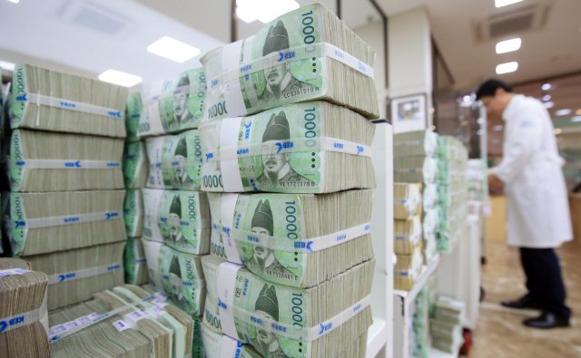 최근 고금리 행진으로 인해 국내 은행들의 수익이 급증하고 있다. 반면 서민들은 고금리로 갈수록 이자 부담에 힘든 실정이다. 은행에 쌓여 있는 원화 뭉치. 부산일보DB