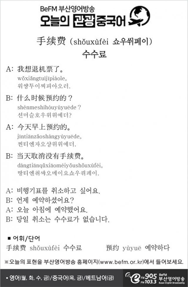 [관광 중국어] 수수료