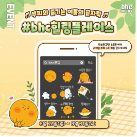 △프랜차이즈 bhc치킨이 '뿌찌X밍밍이' 인스타그램 스티커 이벤트 2탄을 선보인다. 오는 31일까지 '뿌찌X밍밍이' 인스타그램 스티커와 힐링하는 모습을 개인 인스타그램 스토리에 게재한 고객을 대상으로 선물을 증정한다. 관심 고객은 힐링 순간(또는 공간)이 담긴 사진·영상 콘텐츠를 촬영 후 개인 인스타그램 스토리에 등록하는 형태로 참여가 가능하다. 뿌찌X밍밍이 인스타그램 스티커 부착은 필수다. 콘텐츠 등록 전 상단 스토리 꾸미기를 클릭하고 'GIF 메뉴'에서 'bhc뿌찌'를 검색 후 스티커를 선택·삽입한다. 완료되면 bhc 공식 인스타그램 태그와 필수 해시태그를 등록해 게재하면 된다. bhc치킨의 컴투스 컬래버레이션 치킨박스와 함께 인증 시 당첨 확률이 높아진다. 9월 2일 홈페이지를 통해 총 30명 발표된다. 치킨 모바일 기프티콘과 뿌찌 스티커가 일괄 전달되며 레디백, 뿌찌 손풍기는 각각 10명, 20명에게 제공된다.
