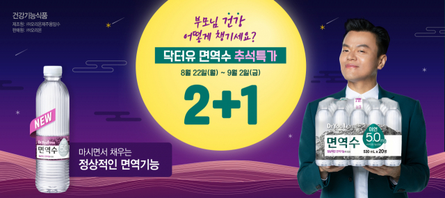 △오리온은 추석 명절을 맞아 '닥터유 면역수 선물하기 이벤트'를 진행한다. 닥터유 면역수 2팩(40병)을 구매하면 1팩(20병)을 추가로 증정하는 '2+1 추석특가' 행사로, 1세트당 3팩 기준 1000세트 한정 수량으로 진행한다. 9월 2일까지 닥터유 면역수 공식 앱과 홈페이지 이벤트 페이지를 통해 1인당 최대 10세트까지 구매 가능하다. 주문 시 받는 사람의 주소지만 입력하면 가정, 직장 등 원하는 곳으로 배송돼 선물하기에 편리하다. 닥터유 면역수는 식품의약품안전처 인정 기능성 원료인 아연을 함유해 정상적인 면역기능에 도움을 줄 수 있는 건강기능식품으로, 530mL 기준 아연 5mg을 담았다. 공식 앱과 홈페이지, 쿠팡, G마켓, SSG닷컴 등 주요 온라인 쇼핑몰과 오프라인 대형마트에서 판매 중이다. 공식 앱과 홈페이지에서는 원하는 배송 주기와 요일, 수량을 정해 정기배송도 신청할 수 있다.