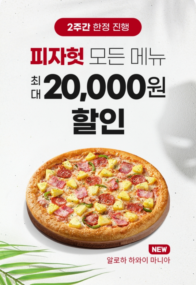 △한국피자헛이 땡겨요와 2주간 한정으로 할인 프로모션을 진행한다. 31일까지 땡겨요 앱에서 피자헛 메뉴를 주문 시 다운받은 쿠폰을 통해 할인받을 수 있다. 최소 2만 4900원 주문 시 적용할 수 있는 1만 5000원 쿠폰을 다운받아 이벤트 기간 내 총 1회 이용 가능하다. 이번 프로모션은 최대 2만 원까지 할인 혜택을 받을 수 있다. 1만 5000원 피자헛 쿠폰에 첫 주문과 두 번째 주문 5000원 할인 쿠폰을 중복으로 사용 가능하다. 다만 피자헛 쿠폰이 조기 소진될 경우 이벤트는 조기 종료될 수 있다.