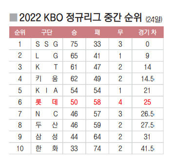 롯데가 상승세를 보이고 있지만 긴장의 끈은 놓을 수 없는 상황이다. 롯데는 5~8위 4개 팀 중 남은 경기 수가 가장 적다. 롯데는 올 시즌 144경기 중 32경기를 남겨두고 있다. 5위 KIA는 35경기, 7위 NC는 38경기, 8위 두산은 37경기가 남아 있다. 롯데로서는 5위 경쟁 중인 팀 중 가장 적은 경기를 남겨둔 만큼 한 경기 한 경기 총력전을 펼칠 수밖에 없는 상황이다.