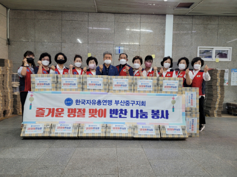 부산 한국자유총연맹중구지회(회장 이희산)는 26일 추석 명절을 맞이해 생활이 어려운 어르신 40명에게 황태, 김 등 반찬 나눔 행사를 개최했다.