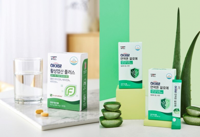 △일동후디스가 1일 영양성분 200% 기준치의 활성형 엽산·비타민B2, B6 가 함유된 '하이뮨 활성 엽산 플러스'와 면역력 증진과 장·피부 건강의 올인원 케어 '하이뮨 면역엔 알로에'를 출시했다. 예비 엄마아빠, 임산부, 수유부 뿐 아니라 평소 식품으로 충분한 엽산 섭취가 어려운 현대인을 위한 엽산 보충 건강기능식품이다. 생체 이용이 용이한 식약처 인증 활성형 엽산(5-MTHF) 800μg을 함유했다. 체내 에너지 생성에 필요한 비타민B2 2.8mg, 단백질·아미노산 이용에 필요한 비타민B6 3mg과 정상적인 엽산 대사에 필요한 비타민B12 50μg을 배합했다. 안정성이 검증된 이탈리아 '노시스'가 만든 특허받은 활성형 엽산을 사용했으며 비타민B군은 모두 독일산으로 원료를 엄선했다. 불필요한 첨가물은 사용하지 않아 믿고 먹을 수 있다. 목 넘김이 편한 작은 사이즈로, 1일 1회 1정을 물과 함께 섭취하면 된다. 하이뮨 면역엔 알로에는 하루 한 포로 면역력 증진과 정상적인 면역 기능은 물론 장·피부 건강까지 한 번에 케어하는 올인원 제품이다. 유기농 인증 프리미엄 알로에를 200배 농축시켜 핵심 기능 성분을 그대로 담고 있다. 면역 다당체 100mg를 함유해 식약처로부터 기능성 인증도 받았다. 동결건조 공법을 사용해 영양소 파괴를 최소화했고 3중 필터 시스템을 도입해 안전하고 엄격한 품질 관리를 거쳤다. 청포도 맛의 젤리 스틱 타입으로 제작돼 간편하고 맛있게 섭취할 수 있다.
