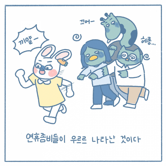 여러분들은 연휴좀비바이러스에 감염되지 않도록 출근 전날은 푹 쉬다가세요..!
